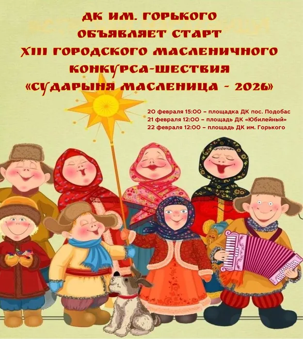 Друзья! Дворец культуры имени Горького объявляет старт XIII городского масленичного конкурса‑шествия «Сударыня Масленица — 2026»!