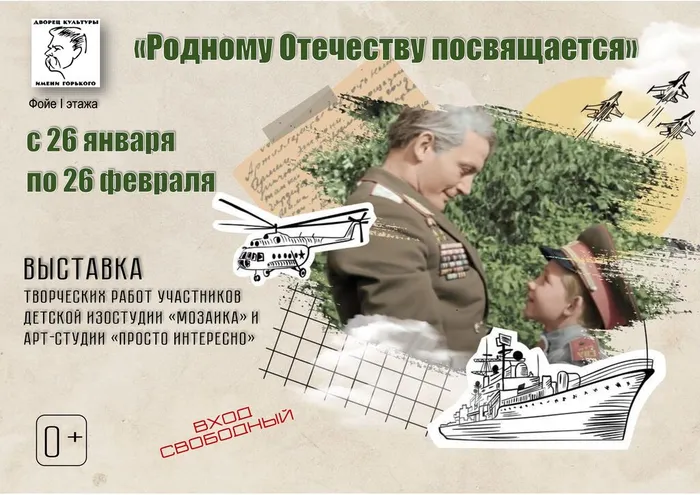 Друзья! В ДК имени Горького ко Дню защитника Отечества открыта выставка творческих работ участников изостудии «Мозаика» и арт-студии «Просто интересно».