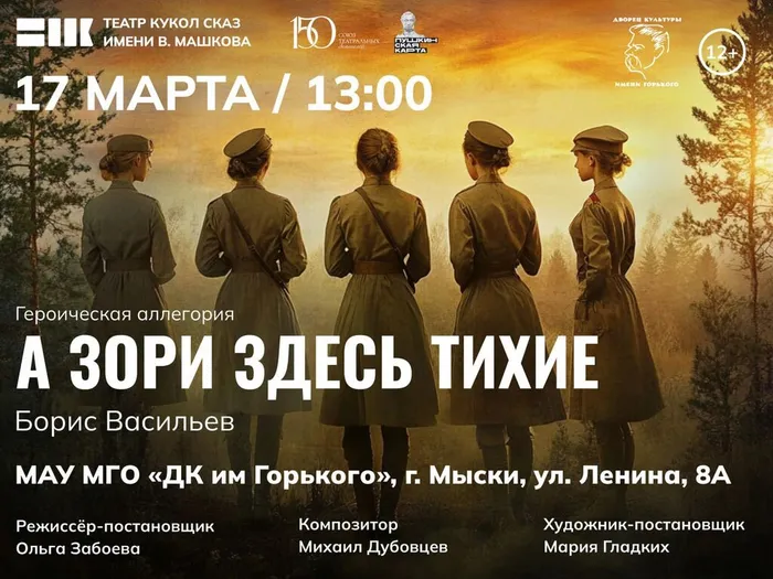 Друзья! 17 марта в 13:00 в ДК им. Горького Новокузнецкий театр кукол «Сказ» покажет спектакль «А зори здесь тихие»