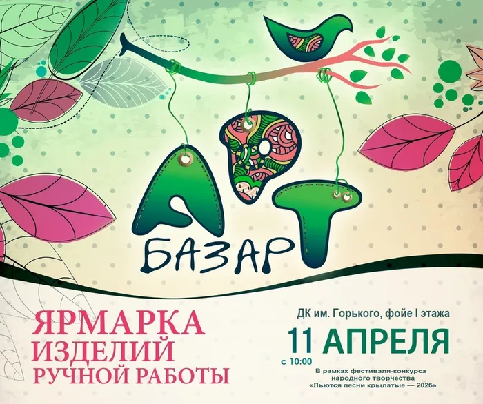 11 апреля с 10:00 в рамках XIX Открытого городского фестиваля‑конкурса народного творчества «Льются песни крылатые — 2026» откроется яркая и душевная ярмарка, где вы сможете познакомиться с творчеством местных мастеров и приобрести уникальные изделия ручной работы.