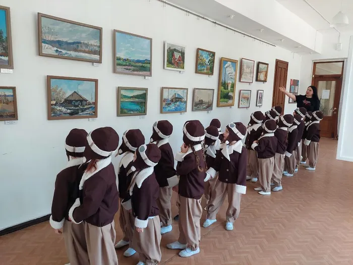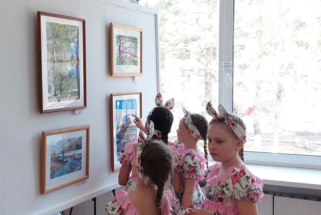 Дети с интересом рассматривали картины, узнавали родные места и делились впечатлениями: "О, это наш ДК!", "А здесь дорога к реке Томь, мы часто ходим на пляж!", "А это ГРЭС, там работает мой папа!".