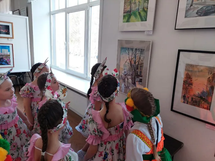 После выступлений на сцене и во время работы жюри по подведению итогов конкурса танцоры посетили выставку «Пейзажи родного города» в галерее «АРТ Сегодня». Коллективная экспозиция мысковских художников приурочена к 70-летию города. Экскурсия стала настоящим открытием: привычные улицы, парки и набережные предстали в новом свете — через призму взглядов местных мастеров.