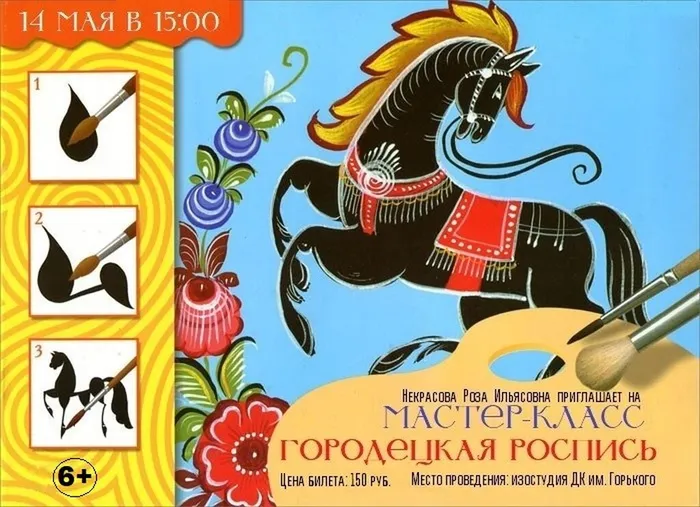 Друзья! Изостудия ДК им. Горького приглашает 14 мая в 15:00 на мастер‑класс «Городецкая роспись»!