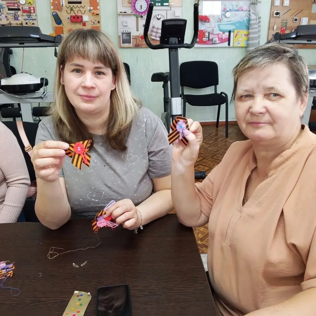Под руководством Некрасовой Розы Ильясовны участники мастер-класса освоили технику создания брошей. Они использовали георгиевскую ленту, фоамиран и клеевой пистолет.